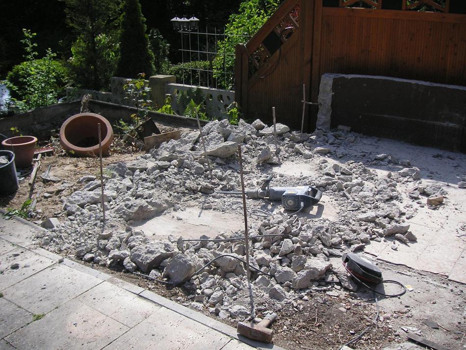 Für den Betonsockel musste der Abbruchhammer ran