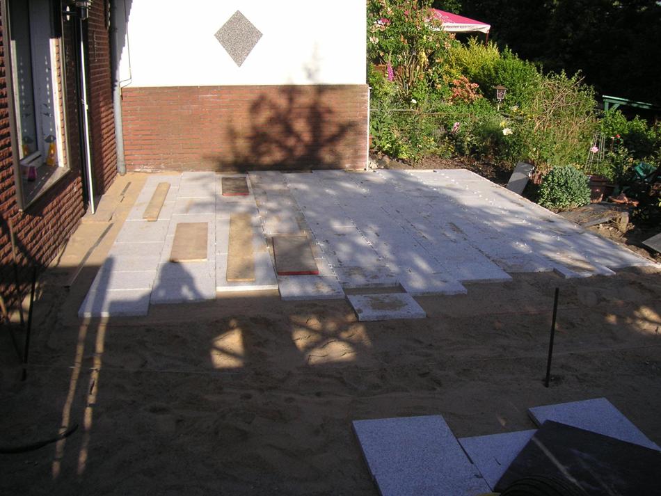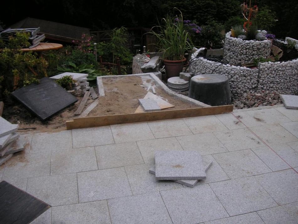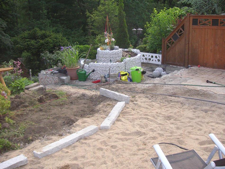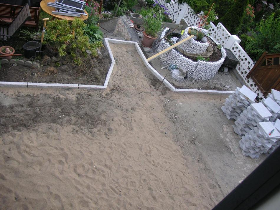 Sand ist drin und jetzt die Randsteine setzen